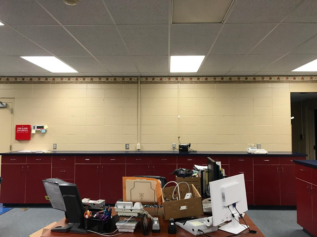 The office before the new wall paint and mural. What a difference a mural makes!!